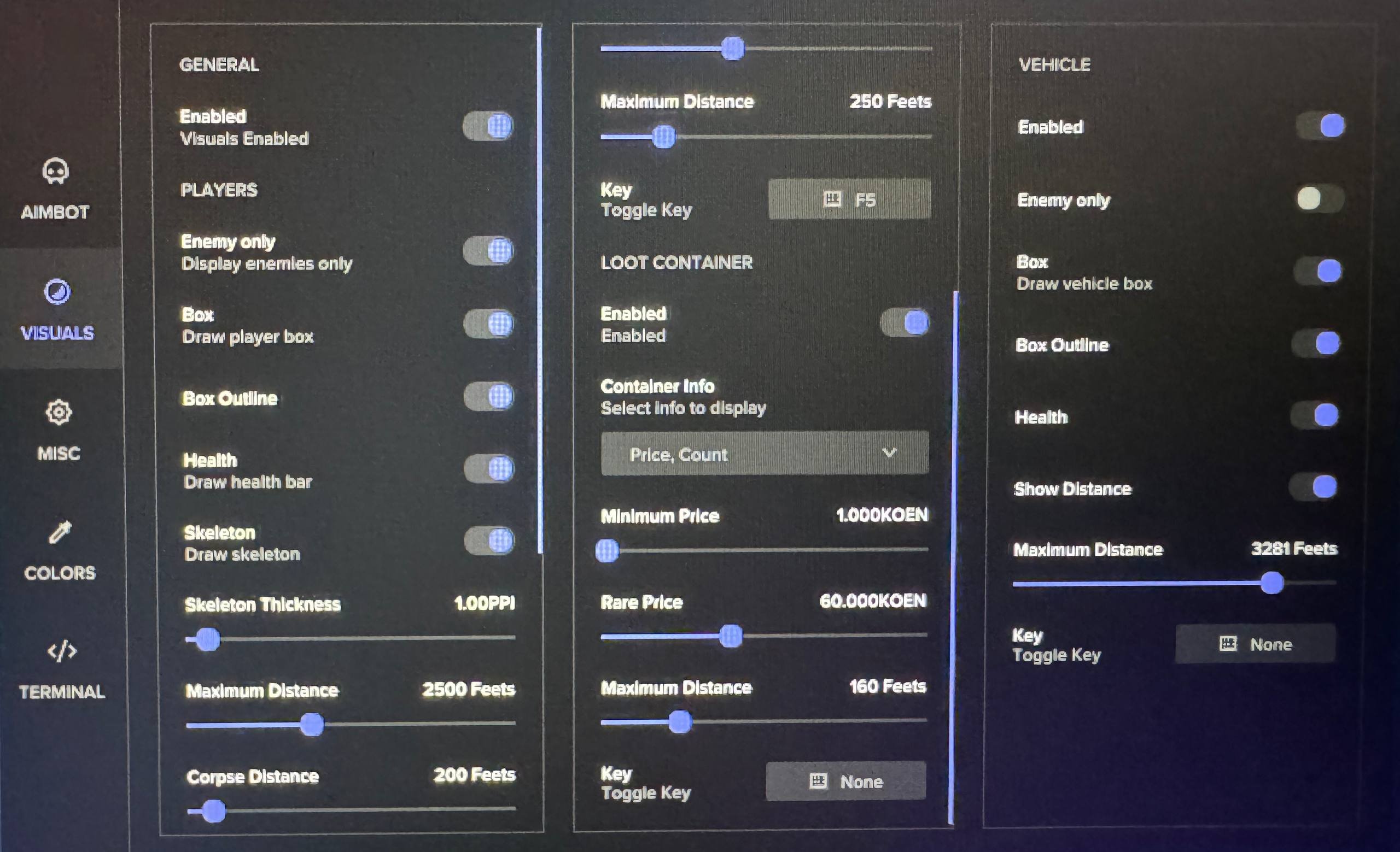 Player/loot/vehicle ESP with color controls