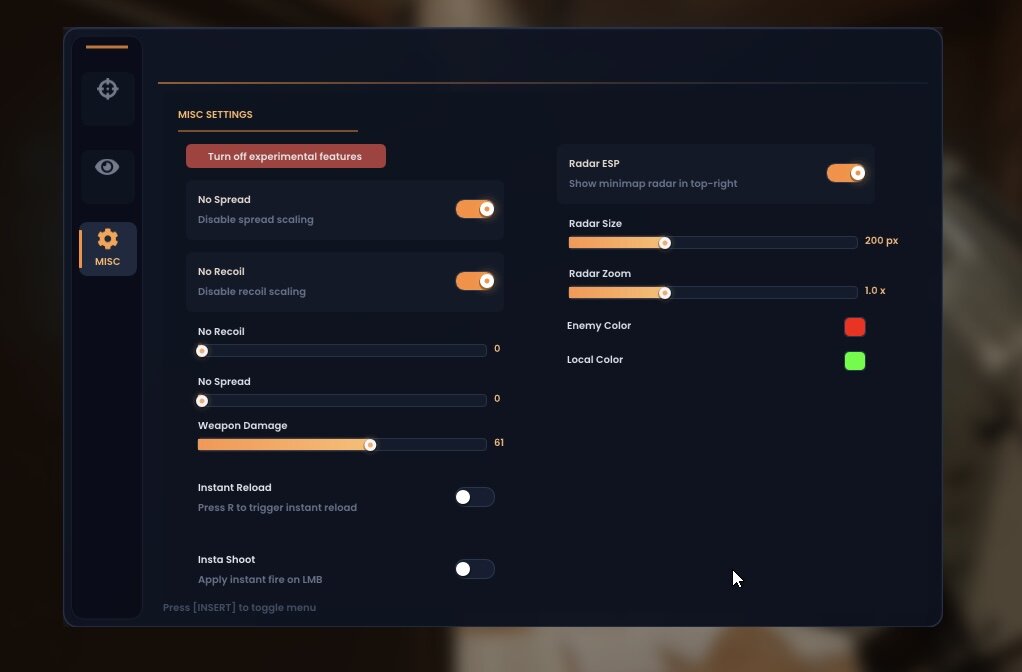 - Wireframe/Solid ESP toggle