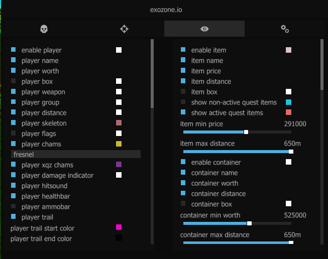 EFT Exozone Cheat delivers an elite-level advantage for Escape from Tarkov players seeking both raw power and surgical precision. Featuring dual-mode aimbot systems, it offers a rage targeting module with 360° kill radius, wall penetration, and silent aim, as well as a legit mode designed for human-like behavior with smooth curves, randomized bones, and dynamic hit areas. The built-in visual suite provides comprehensive ESP overlays, showing players, items, corpses, extraction zones, and more, alongside detailed stats like weapon data and health bars. Gameplay enhancements include infinite stamina, thermal vision, no inertia, and speed modifications for a highly customizable tactical experience. Explore the complete feature set on the Escape from Tarkov EFT page or browse more powerful solutions at ABCheats.