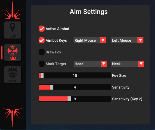 - Aimbot Keybinds – Allows setting up two separate keys for activating the aimbot
