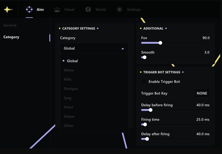 - Rifle / Sniper / SMG / Pistol / Other / Global / Melee / Shotgun